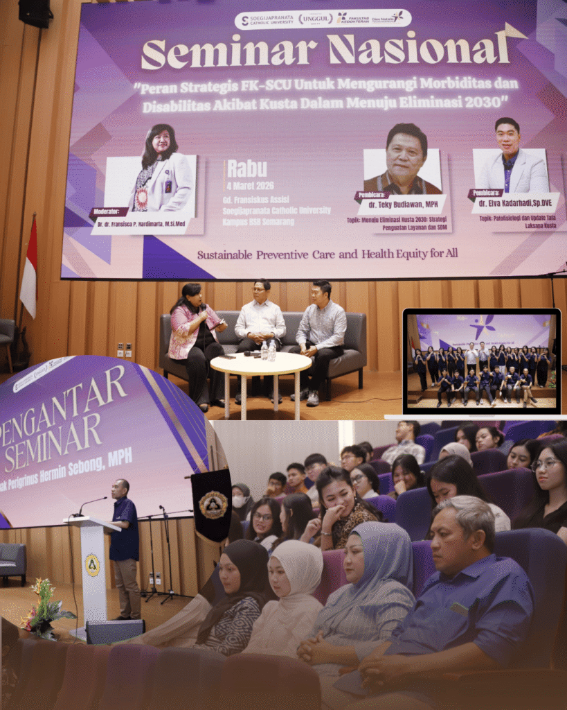FK-SCU. Fakultas Kedokteran Soegijapranata Catholic University menyelenggarakan misa syukur dan seminar nasional dalam peringatan Dies Natalis ke-7. Puncak acara tersebut dilaksanakan pada Rabu, 4 Maret 2026 sebagai ucapan syukur kepada Yang Maha Esa dan sekaligus ajang keakraban yang melibatkan dosen, mahasiswa, tenaga kependidikan, alumni, mitra strategis, jejaring rumah sakit, serta Puskesmas.